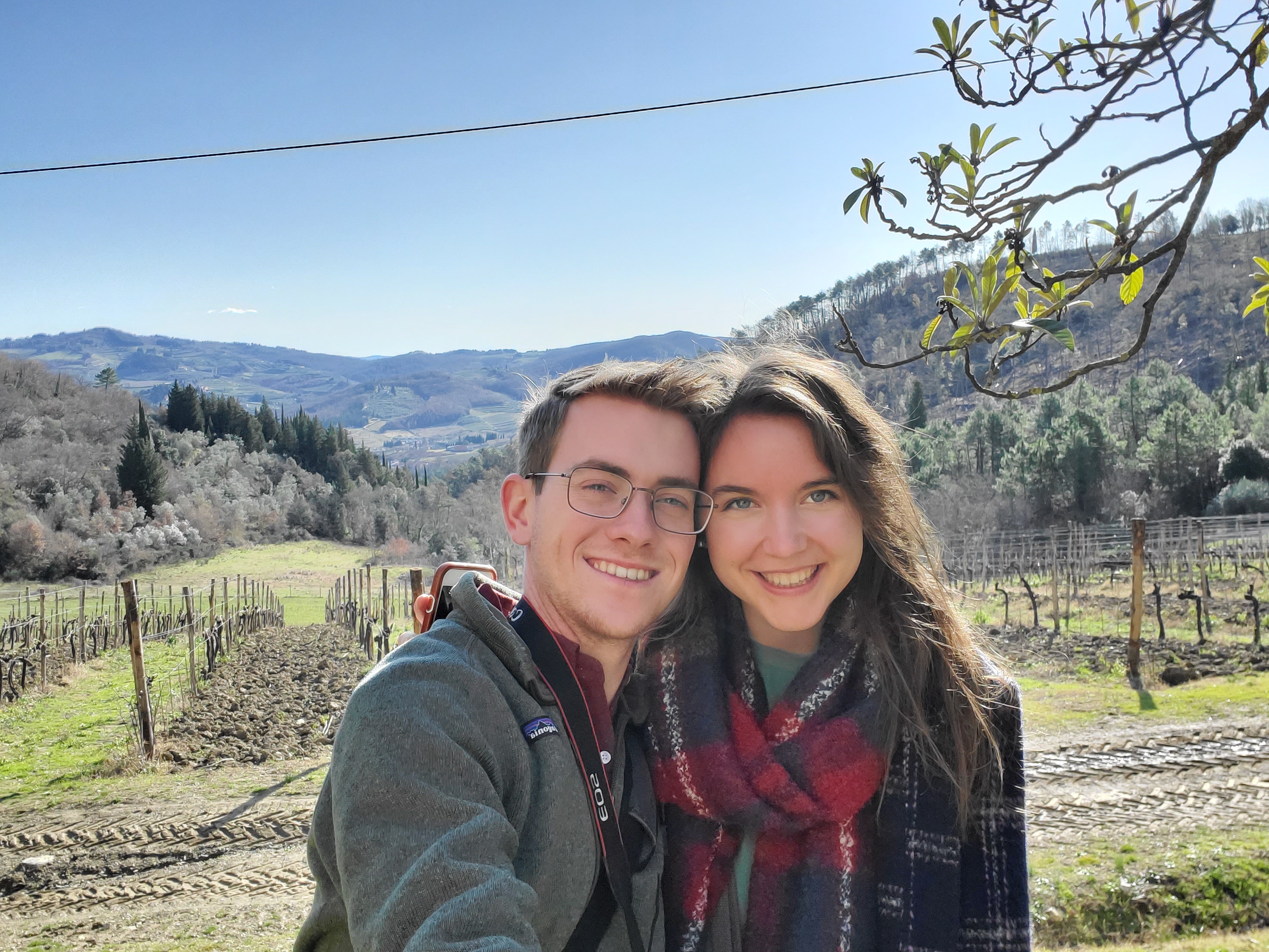 One-Quarter Score and one year ago, during an evening of soccer and football (yes, simultaneously) at Penberthy Fields, Texas A&M University, Gwen and Reed had their first meeting. Little did they know then, but after one year of completely failing to kindle a relationship (due to some absent mindedness from Reed and some intentional avoidance from Gwen), it would soon catch fire in 2018. After a chaotic first year together racing to complete their Undergraduate Degrees in Computer Science and Chemical Engineering, the two were able to travel to Italy on their first international trip together, making some of their favorite memories as they explored Rome, Florence, and Lucca. They then settled comfortably into the next 2 years of their lives... living 2,195.5 miles apart (from Seattle, WA to Longview, TX)... in March of 2020...